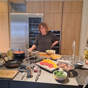 Donderdag 19 februari kwamen we weer bij elkaar. Onze kookclub van vijf buurtgenoten met een passie voor koken. En eten natuurlijk. En waarbij we het genoegen delen met een door ieder van ons uitgenodigde gast.Het was weer vanouds dringen aan het keukenblok. Maar wonder boven wonder zonder enige wanklank. Na ampele discussie pakte ieder een recept dat klaar lag en ging fluitend aan de slag.